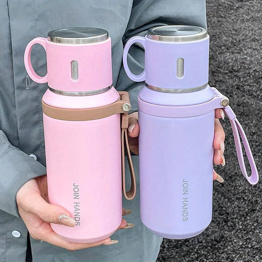 316 Stainless Steel Insulated Water Bottle with Cup Portable Vacuum Flask for Outdoor Activities Handheld Tumbler Keep 24Hr Cold